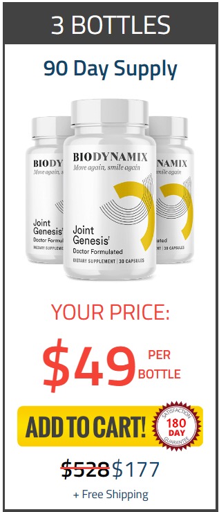 Joint Genesis supplement is backed by a 180 day, no questions asked, 100% money back guarantee to make getting started an absolute no-brainer for you.